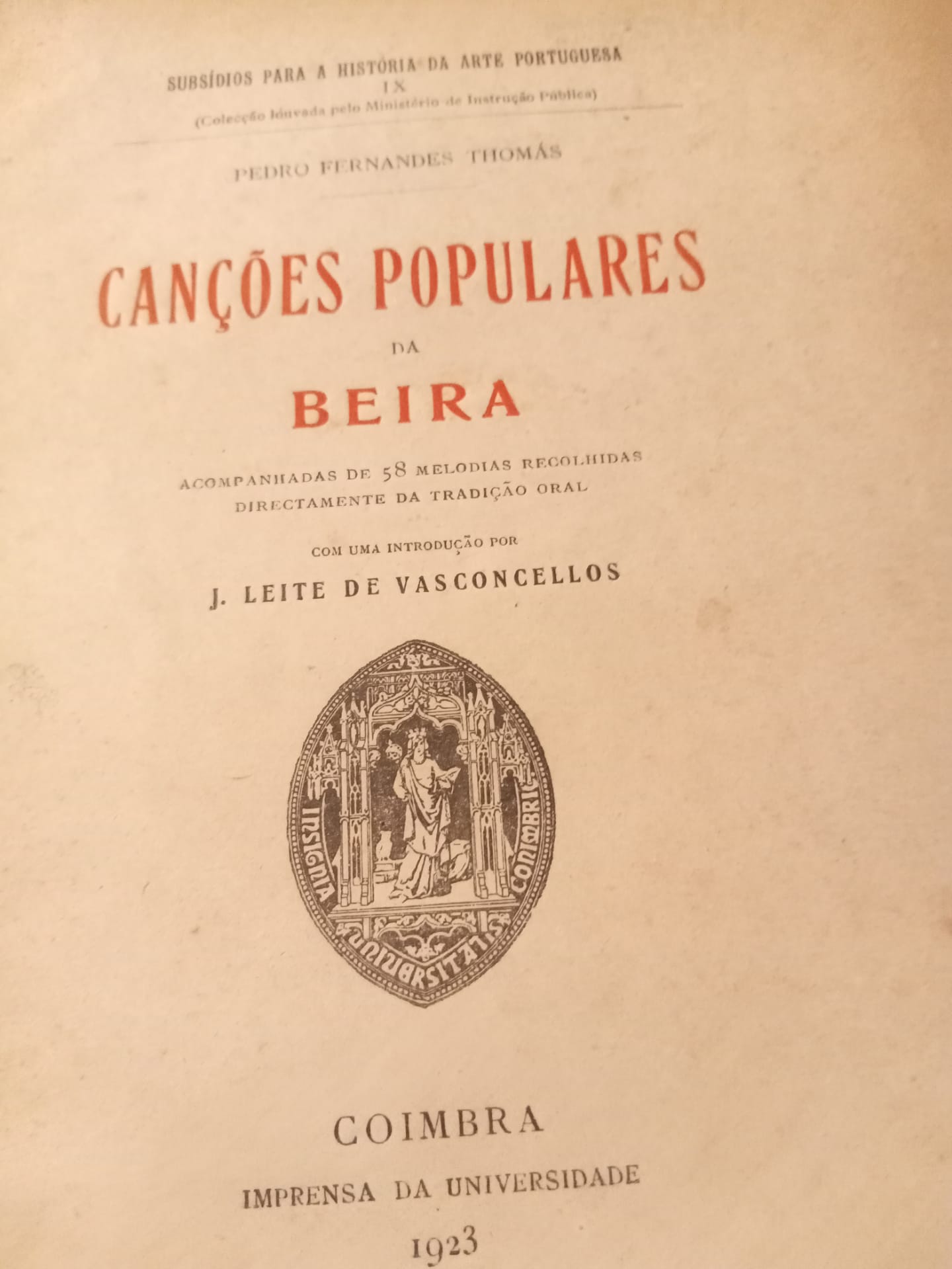PEDRO FERNANDES THOMÁS – CANÇÕES POPULARES DA BEIRA – ACOMPANHADAS DE 58 MELODIAS RECOLHIDAS DIRECTAMENTE DA TRADIÇÃO ORAL